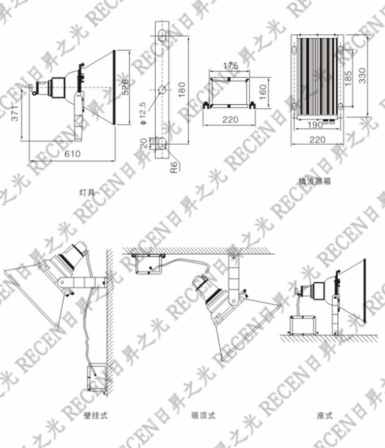 ★ 灯具具备座式、吸顶式、壁挂式、吊杆式、护栏式、法兰式等多种安装方式,适应不同工作现场的照明需求。