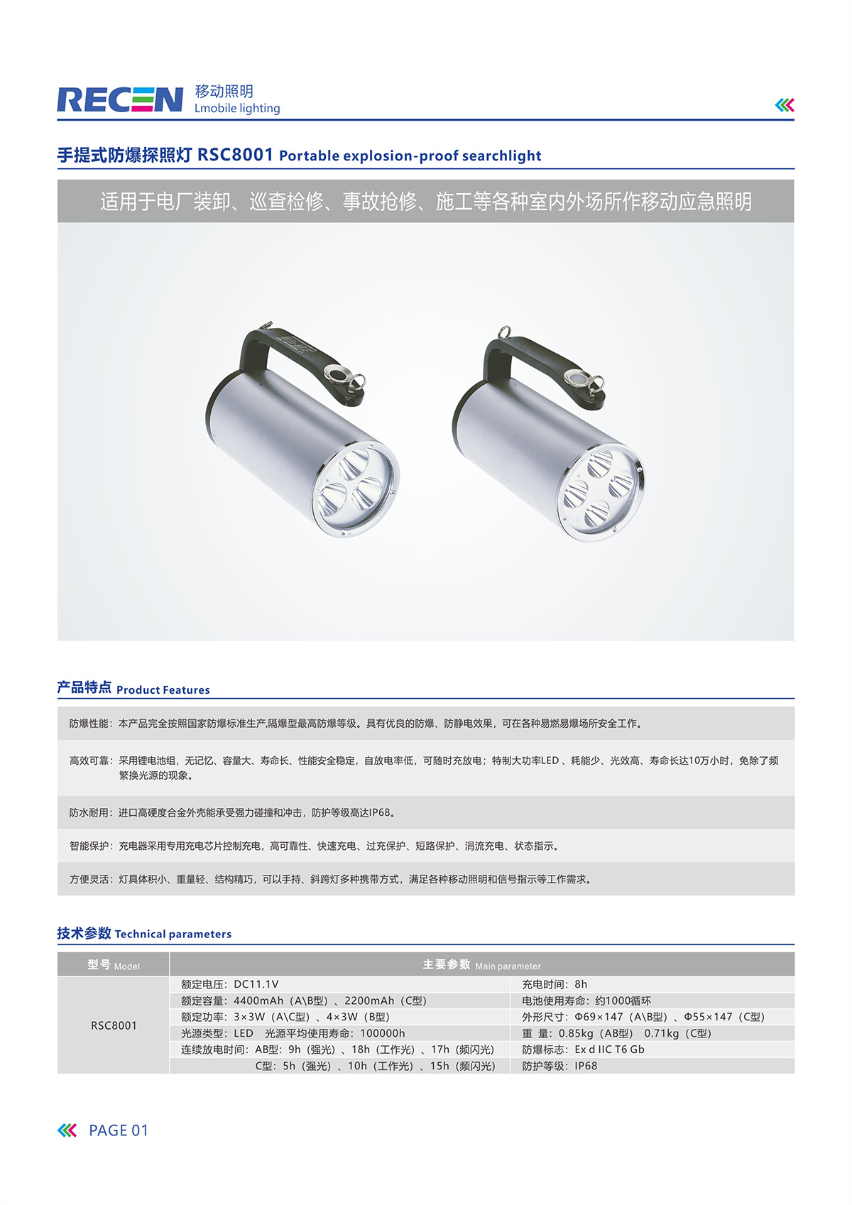RSC8001-手提防爆探照灯