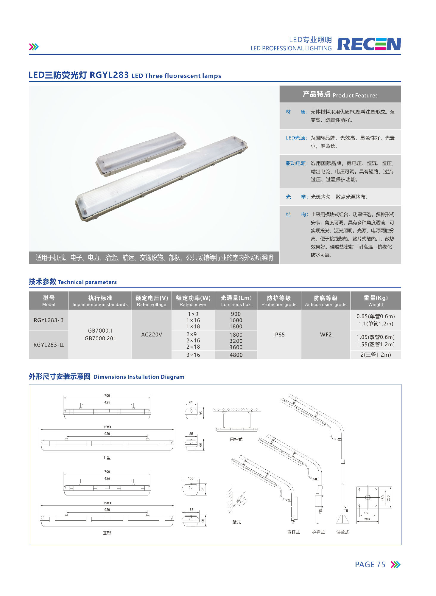 RGYL283-LED三防荧光灯